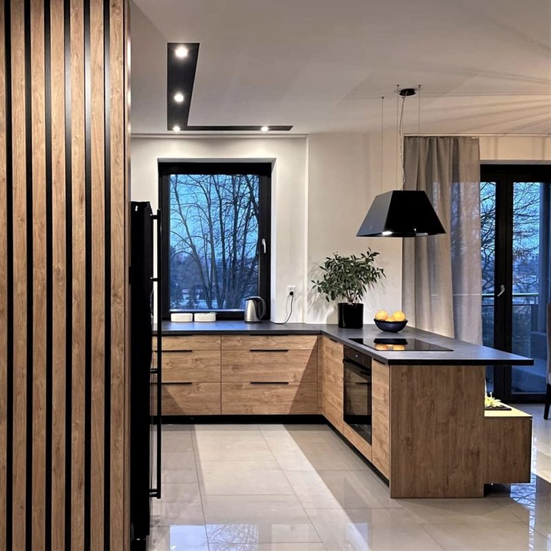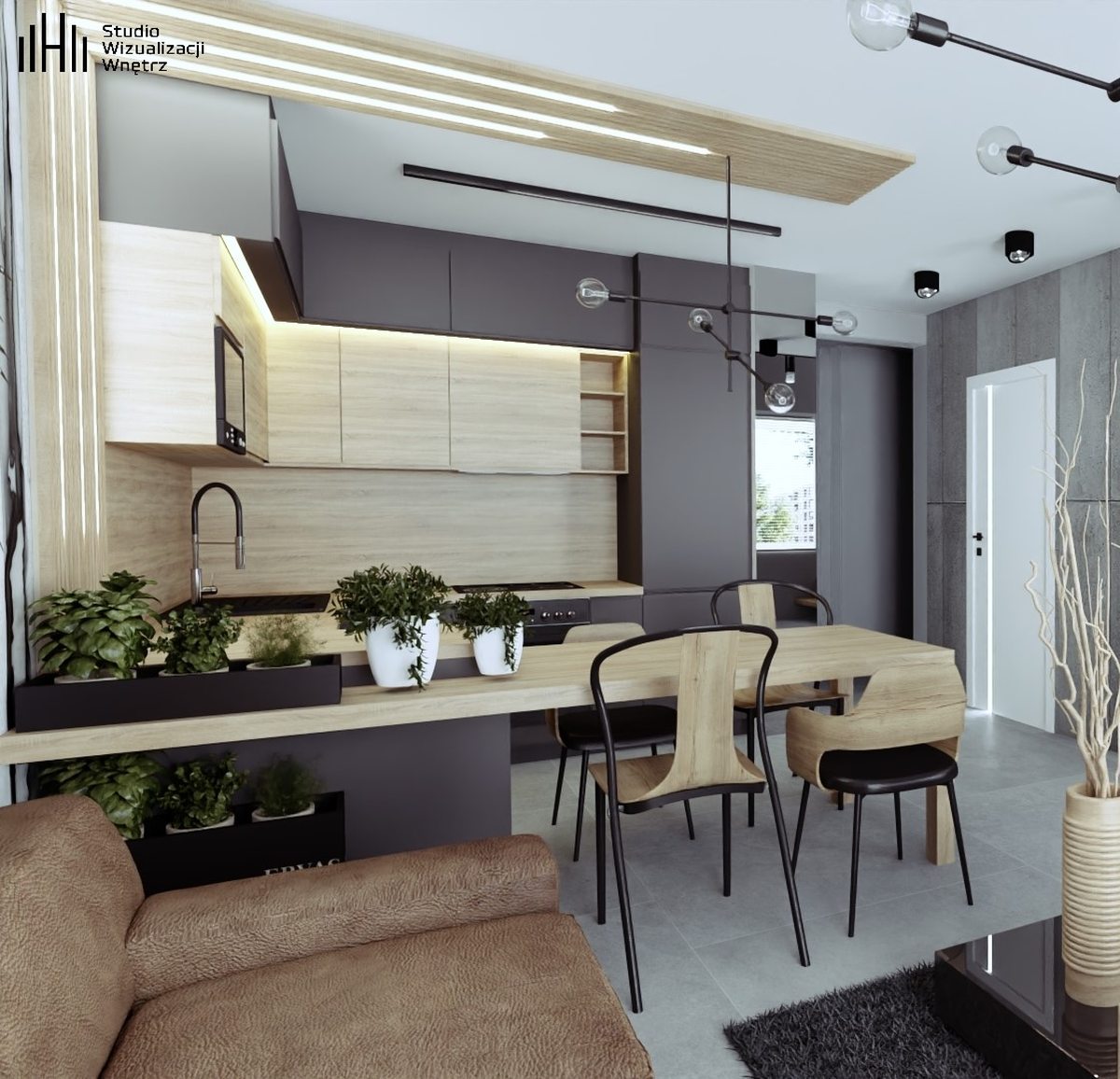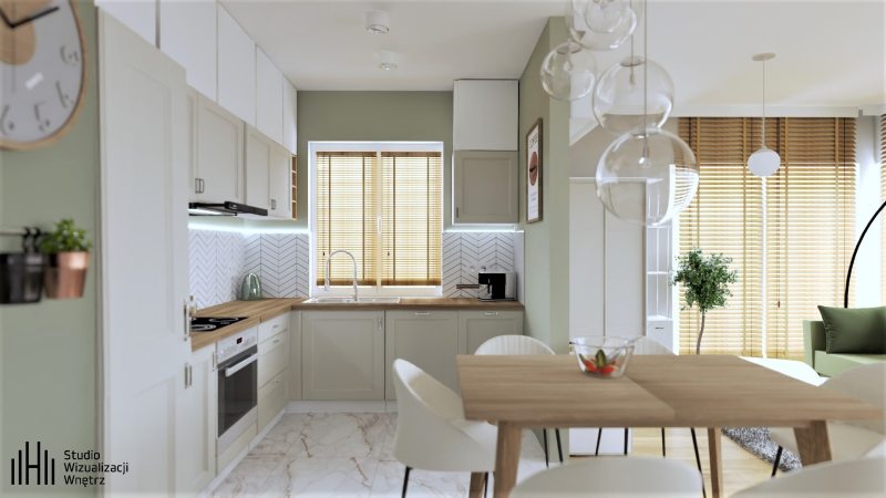 - projekt kuchni- propozycja rozrysowania ustawienia szafek i sprzętów AGD w kuchni, materiał i kolorystyka (koncepcje wnętrza szafek są poza ofertą, i są ustalane bezposrednio ze stolarzem);