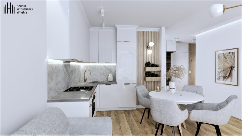 Kolejnym etapem projektowania wnętrza to projekt koncepcyjny 3D oparty na początkowych ustaleniach. Projekt przedstawia najbardziej optymalne rozwiązanie pod względem funkcjonalnym.